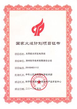 高擎火炬,KELONG光伏发电系统获科技部殊荣