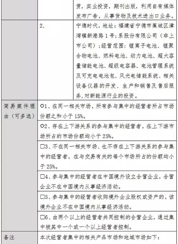 经营者集中简易案件公示表