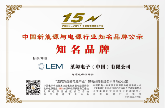 中国北京,2018年5月7日-2018全国知识产权宣传周世界知识产权日中国(北京)电源行业知识产权4.26主题推宣活动近日在北京落下帷幕。同期举办的还有北京电源行业协会第四届会员大会和中国机电一体化技术应用协会电能系统分会成立大会。电量传感器领域的市场先导者莱姆电子出席本次活动并荣获电源电磁组件产品类知名品牌奖。