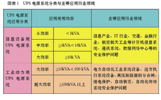 3.1 UPS电源行业应用领域与功率划分(见图表1)