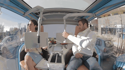 每位乘客有三个显示屏可供操作使用,并且车内也设计有可载种草莓或其他植物的空间。