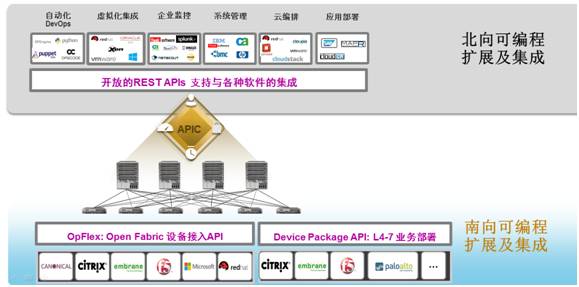 北向接口可支持自动化、虚拟化集成、企业监控、系统管理、云编排、应用部署等各种软件的集成;