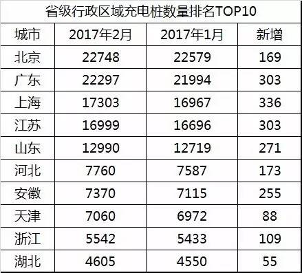 中国充电联盟发布2017年2月全国充电设施数据统计信息