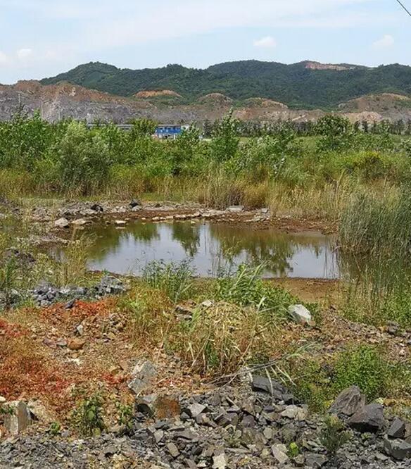 在穿过了隔离栏和绿化带后,乐视汽车生态产业园呈现在了我们面前。据亿欧汽车观察,这里的大多数区域都处于杂草丛生的荒芜状态,放眼望去除了隐藏在远处树后的一台静止的挖掘机外,园区内没有一台大型工程机械。整个区域内分布着不少水洼,疑似是此前因爆破作业而造成的弹坑。