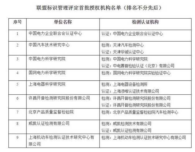8月23日,中国充电联盟官方发文称,为进一步贯彻落实《国务院办公厅关于加快电动汽车充电基础设施建设的指导意见》(国办发〔2015〕73号)的文件精神,中国充电联盟在国家能源局的指导下于7月11日正式启动充电基础设施标识管理评定工作。按照联盟标识管理评定体系文件(试行)的要求,结合实际工作情况,经过联盟对相关机构的遴选和综合评价后,公示了9家联盟标识管理评定授权机构名单。