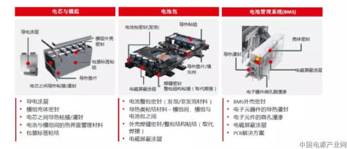 电芯与电芯之间的粘接:电芯与电芯之间需要使用胶黏剂进行粘接固定,以实现电池的稳定运行。在新能源汽车中,常用的胶黏剂类型包括聚氨酯结构胶、有机硅胶、双组份硅胶等,这些胶黏剂具有高强度、耐温、耐腐蚀和导热性好的特点。例如,在电动汽车的电芯粘接中,使用聚氨酯结构胶进行粘接固定,可以提供高强度、耐温、耐腐蚀和导热性好的性能,确保电池的稳定性和安全性。