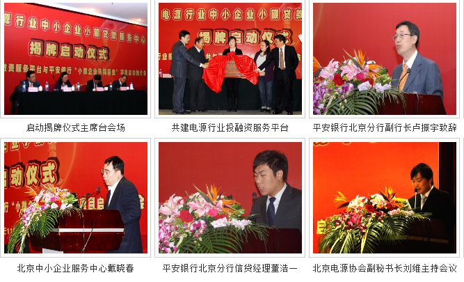 为深入贯彻国家和北京市扶持小微企业发展的各项政策措施,促进电源行业中小企业充分利用我市政策解决融资问题,在北京市经济和信息化委员会及相关领导的支持下,在平安银行北京分行的大力协助下,由北京电源行业协会牵头,北京电源行业中小企业小额贷款服务中心揭牌启动仪式暨电源行业投融资服务平台与平安银行“小微企业共同基金担保”项目启动推介会,定于2012年11月29日在广电国际酒店宴会厅(西城区 西便门外大街2号)隆重举办。